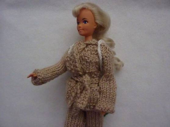 This safari outfit can be knitted in a light sand colour or a khaki colour if you prefer.